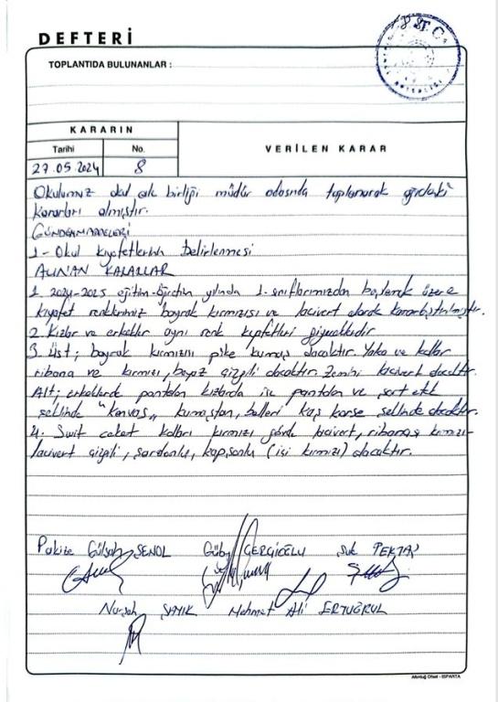 *Okul kıyafetlerindeki standartlar Okul Aile Birliğinin 2024/8 sayılı kararında belirtildiği gibi olacaktır.